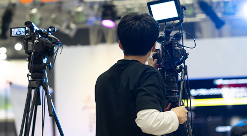 弊社は様々な配信業務をおこなっています。大手企業における全国の支社をつないだ大規模社内配信や、イベントや舞台のライブ配信、タレントによるトークライブ配信、スポーツ中継配信、さらにVtuberコンテンツの制作サポート業務なども。千代田グループでは「配信システム班」や「カメラ収録班」「イベント進行班」の各チームがあり、専門性の高い配信業務を展開しています。