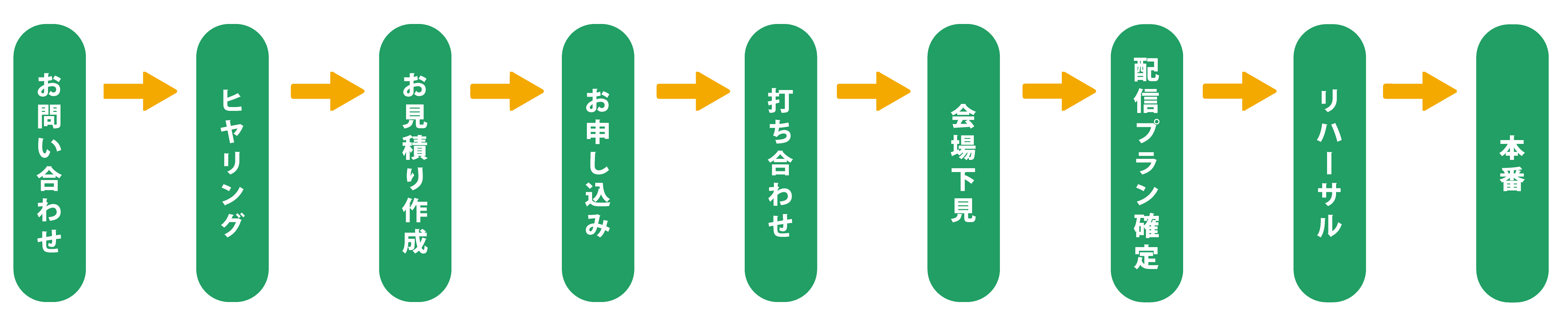 ヒヤリングでは、希望の配信内容や使用ツール、会場などに関して確認させて頂くことで、お客様のご要望をしっかり把握した上でお見積りをさせて頂きます。また詳細に関して決まっていない場合などは、弊社から提案させて頂く事も可能ですので、お気軽にご相談ください。